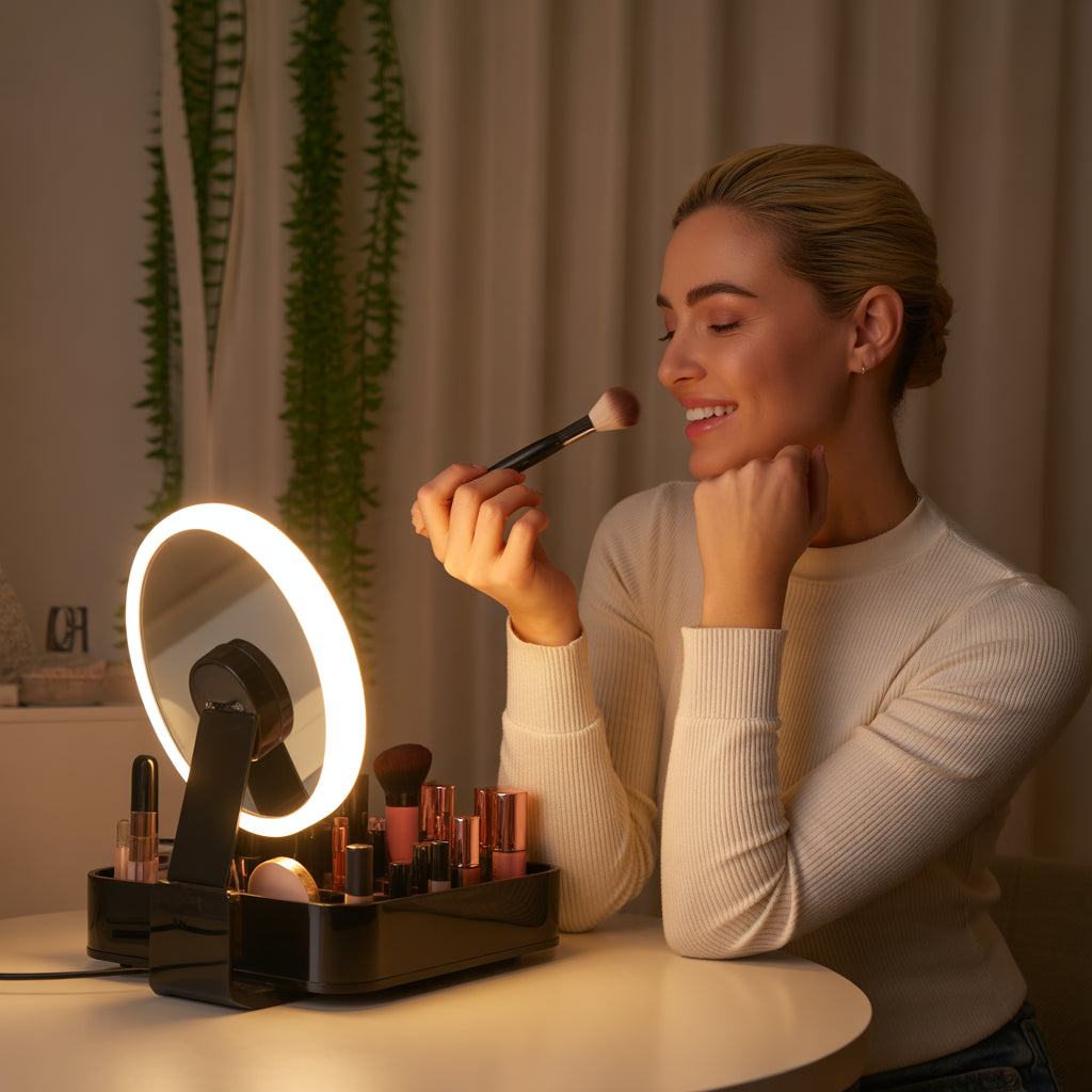 LED Cosmetic Organizer with HD Mirror – Makeup Storage Box for Vanity & Travel